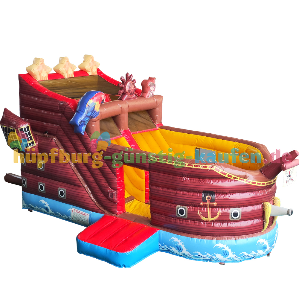 Pomppulinna Eläimet merirosvolaivalla on todellinen katseenvangitsija! Leijona ja norsu koristavat tätä upeaa merirosvolaivaa ja kutsuvat kaikki lapset leikkimään yhdessä. Pomppulinnassa voi paitsi hyppiä myös laskea liukumäkeä, joka päättyy suoraan pomppulinnan sisään. Näin lapset voivat leikkiä turvallisesti ja pomppulinna pysyy puhtaana. Suuri katolla oleva norsu näkyy kauas ja tekee siitä vetonaulan jokaisessa tapahtumassa.