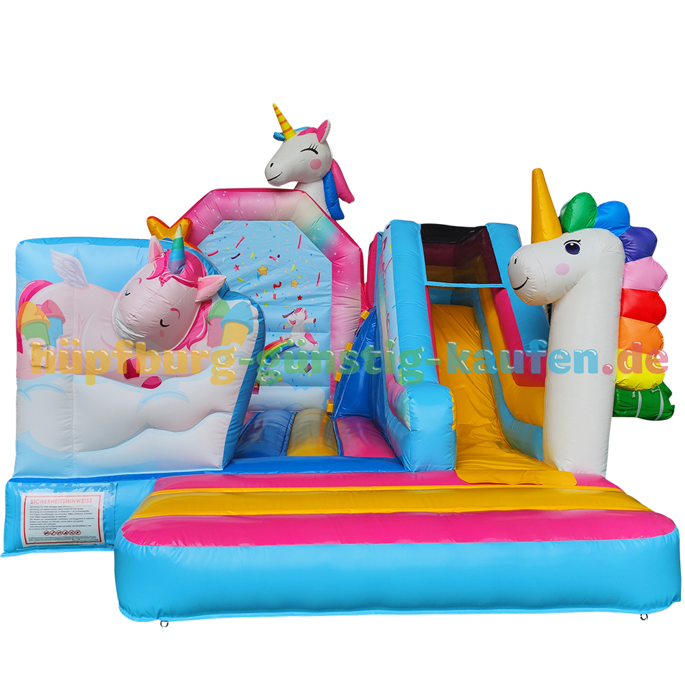 A Ugrálóvár Kacsaföld csúszdával egy professzionális modell, amely a DIN EN 14960 szabvány szigorú előírásai szerint készült és ellenőrzött – tehát biztonságos és megbízható. Ideális bérléshez és profi használathoz. Kérjük, ügyelj arra, hogy csak gyermekek használhatják – felnőttek nem!