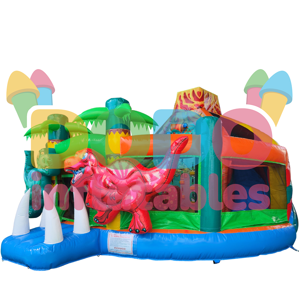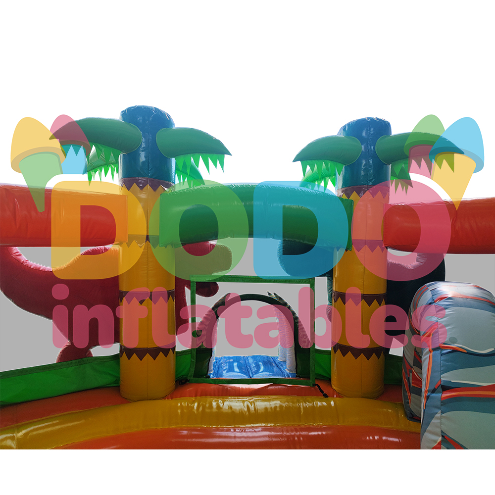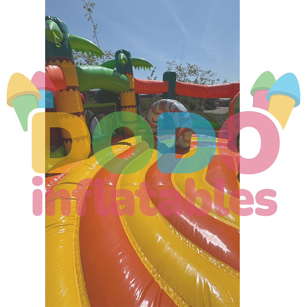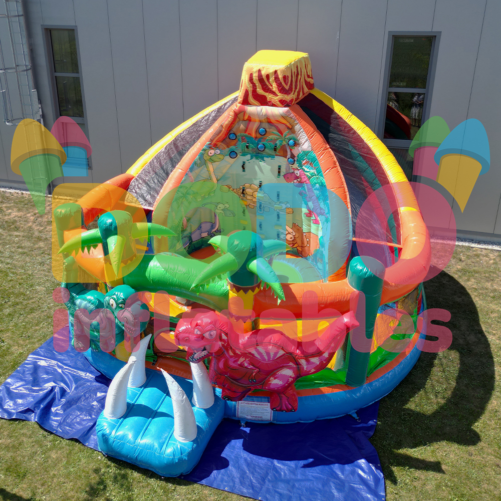 Laipni lūgti neaizmirstamā piedzīvojumā mūsu daudzspēļu vulkāna uzpūšamajā pilī ar dinozauriem! Šajā aizraujošajā lecamauklā apvienots vulkāna un dinozauru valdzinājums, lai piedāvātu bērniem ceļojumu aizvēsturiskajā pasaulē, kas ir pilna jautrības un iztēles. Mūsu Multiplay Vulkan piedāvā neskaitāmus aizraujošus uzdevumus, kas rotaļīgā veidā veicina fizisko mobilitāti un koordināciju. Slēgtās malas un drošības tīkls virs slīdkalniņa padara šūpuļdārzu ļoti drošu jebkurai lietošanai. Multiplay Volcano Bouncy Castle ar slīdkalniņu komplektā ir piemērota transportēšanas soma, un to var viegli uzstādīt aptuveni 10 minūtēs. Iepakojumā ietilpst uzpūšamā pils, transportēšanas soma un remonta komplekts. Lūdzu, ņemiet vērā, ka pūtējs un pamatnes pārklājs nav iekļauts komplektācijā. Tos var atrast mūsu piederumu kategorijā. Abi piedāvātie pūtēji(Huawei un Gibbons) ir piemēroti lecamauklai. Multiplay Volcano Bouncy Castle ar slīdkalniņu ir izgatavots no izturīga PVC brezenta (0,55 mm / 621,3 g/m2) un sertificēts atbilstoši DIN EN 14960, tāpēc tas ir kvalitatīvs produkts, kas atbilst visaugstākajiem drošības standartiem. Lūdzu, izmantojiet šūpuļdārzu tikai uz piemērotas pamatnes, lai pasargātu to no asiem priekšmetiem uz zemes un nodiluma. Lai nodrošinātu maksimālu drošību, iesakām uzstādīt uzpūšamo pili uz zāliena un nostiprināt to ar mūsu zemes enkuriem. Pēc katras lietošanas reizes lecamauklu jāizžāvē un pienācīgi jāiepako, lai pasargātu to no ārējās ietekmes un transporta bojājumiem.