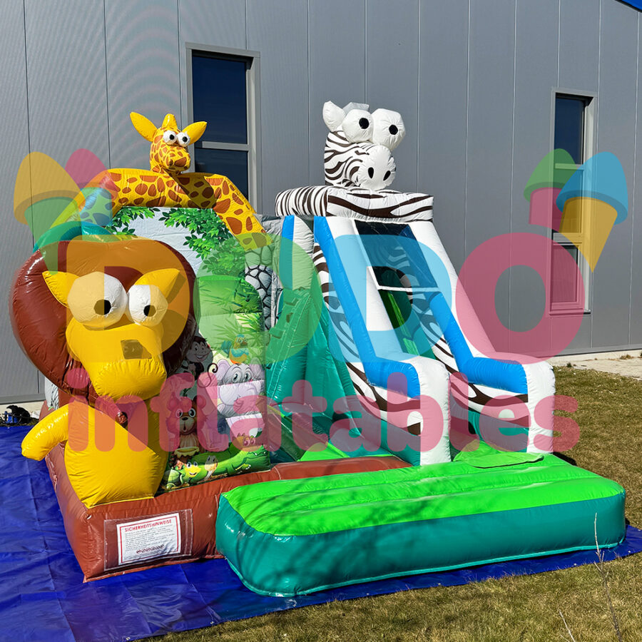 Sīkāka informācija par Jungle Animals Bouncy Castle ar slidkalniņu