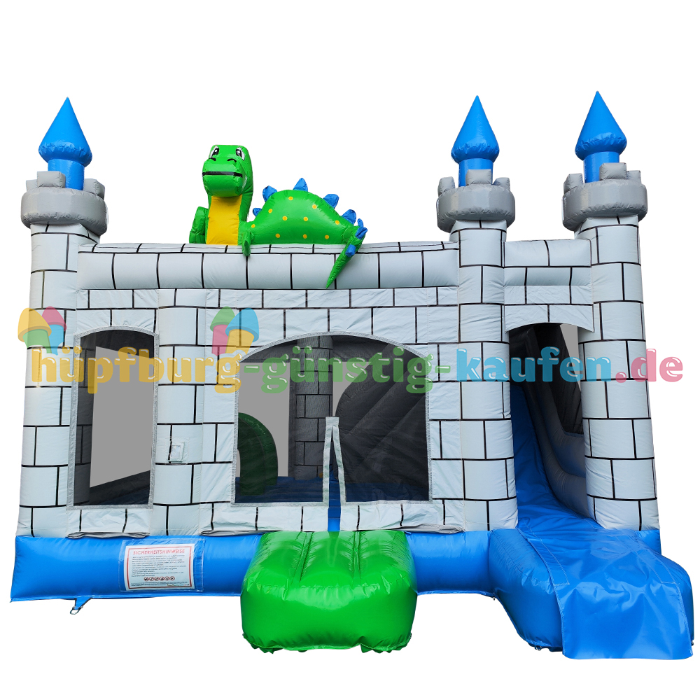 Hoppeslott Drage med sklie er et profesjonelt modul som er produsert og testet etter de strenge retningslinjene i DIN EN 14960, noe som betyr at det er trygt og pålitelig. Dette gjør hoppeslottet ideelt for profesjonell utleie. Vennligst merk at bare barn får bruke hoppeslottet – ikke voksne!