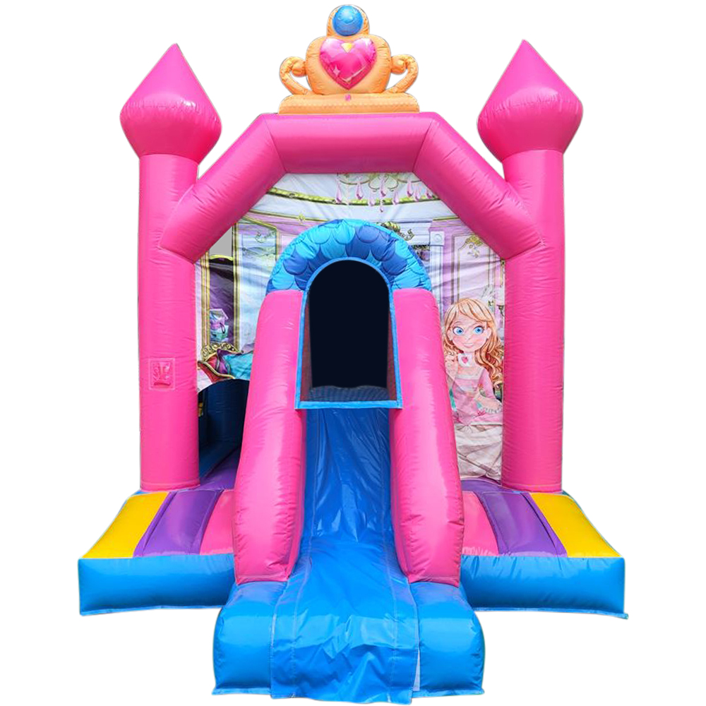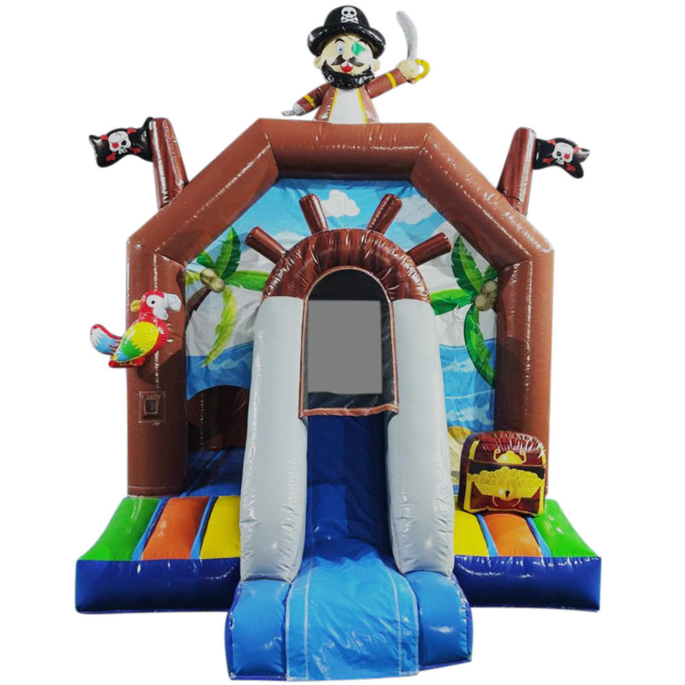 Vårt Hoppeslott Safari med sklie er noe helt spesielt. Kombinasjonen av hoppeslott og sklie garanterer mye moro. Med lukkede vegger rundt hele hoppeslottet kan også de aller minste leke og hoppe trygt. På grunn av sin kompakte størrelse passer hoppeslottet perfekt i mindre hager.