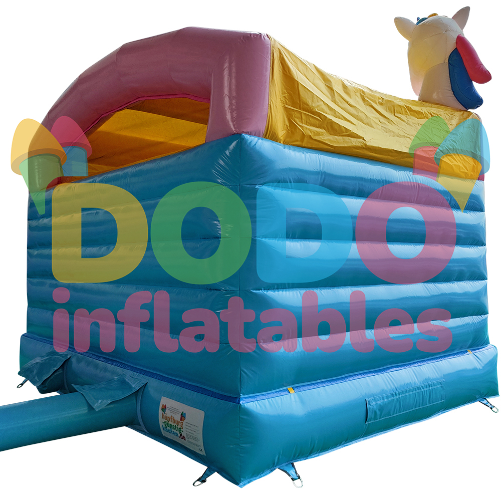 Made of durable PVC tarpaulin (0.55 mm / 621.3 g/m²) and certified according to DIN EN 14960, the Bouncy Castle Unicorn Mini is a quality product that meets the highest safety standards.