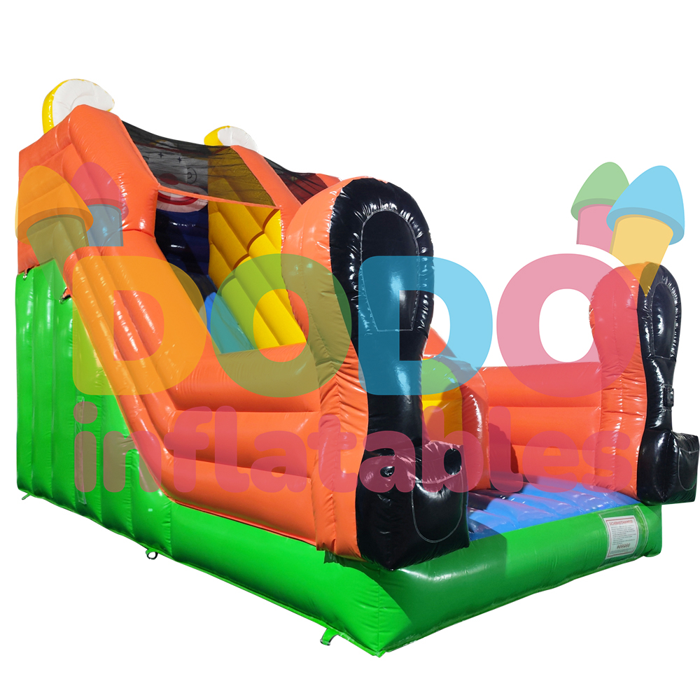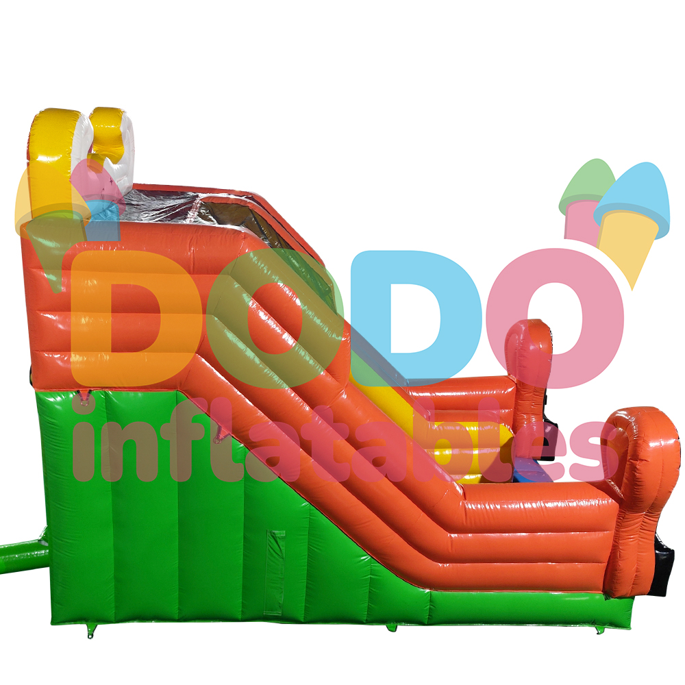 Bine ați venit în lumea veselă a Castelului Gonflabil Tobogan Clovn! Această atracție unică promite ore întregi de distracție pentru micii aventurieri. Toboganul este decorat cu un clovn zâmbitor care îi întâmpină călduros pe copii. Toboganul oferă o coborâre palpitantă și pornește din interiorul castelului, oferind un plus de confort și distracție. Partea superioară a toboganului este echipată cu o plasă de siguranță pentru a garanta siguranța maximă. Descoperiți lumea râsului și mișcării cu Castelul Gonflabil Tobogan Clovn!