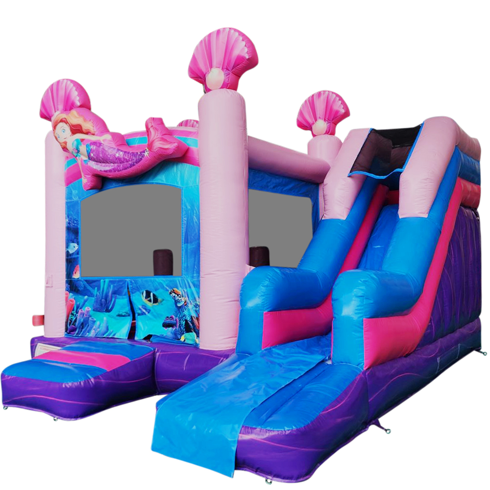 Upoštevaj tudi, da mora puhalo (ni vključeno) med uporabo neprekinjeno delovati in da je rahel izpust zraka skozi odprtine potreben, da napihljiv grad ne poči.