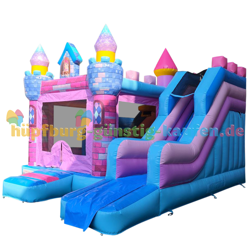 - Potreben prostor: 11,10 x 8,10 m (D x Š) (po DIN EN14960) Kaj to pomeni? Po DIN standardu mora biti okoli napihljivega gradu 1,80 m prostora in 3,50 m pred odprto stranjo. To služi varnosti; izvedba je po lastni presoji.